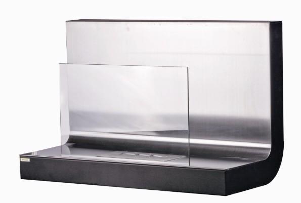 Материал биокамина:сталь, покрытие из чёрной порошковой краски, термостойкое стекло, горелка из нержавеющей стали.