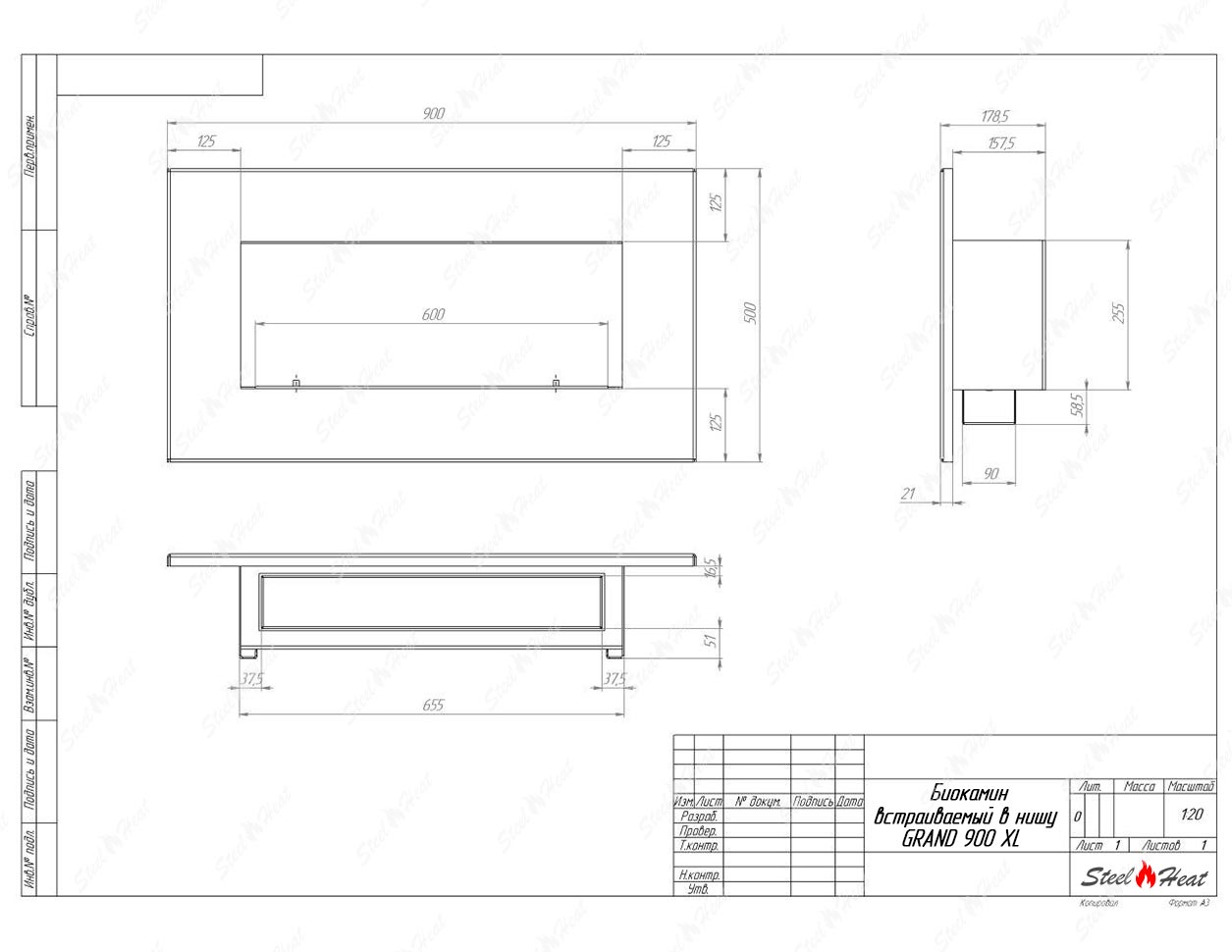 Биокамин SteelHeat GRAND-H 900 XL - Характеристики