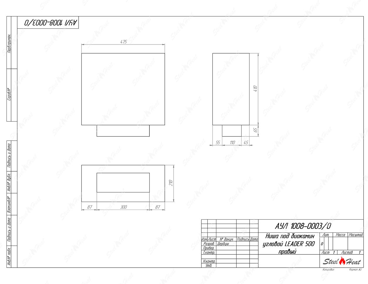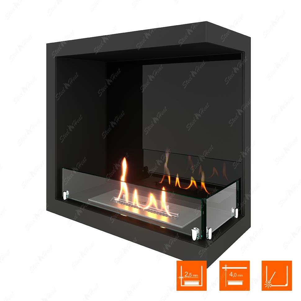 Встраиваемый Биокамин угловой SteelHeat Leader 500 правый предназначен для встраивания в глухие ниши из гипсокартона, кирпича, пеноблоков, бетона.
